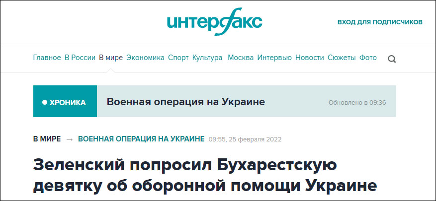 國際文傳電訊社報道截圖:澤連斯基要求布加勒斯特九國向烏克蘭提供國防援助