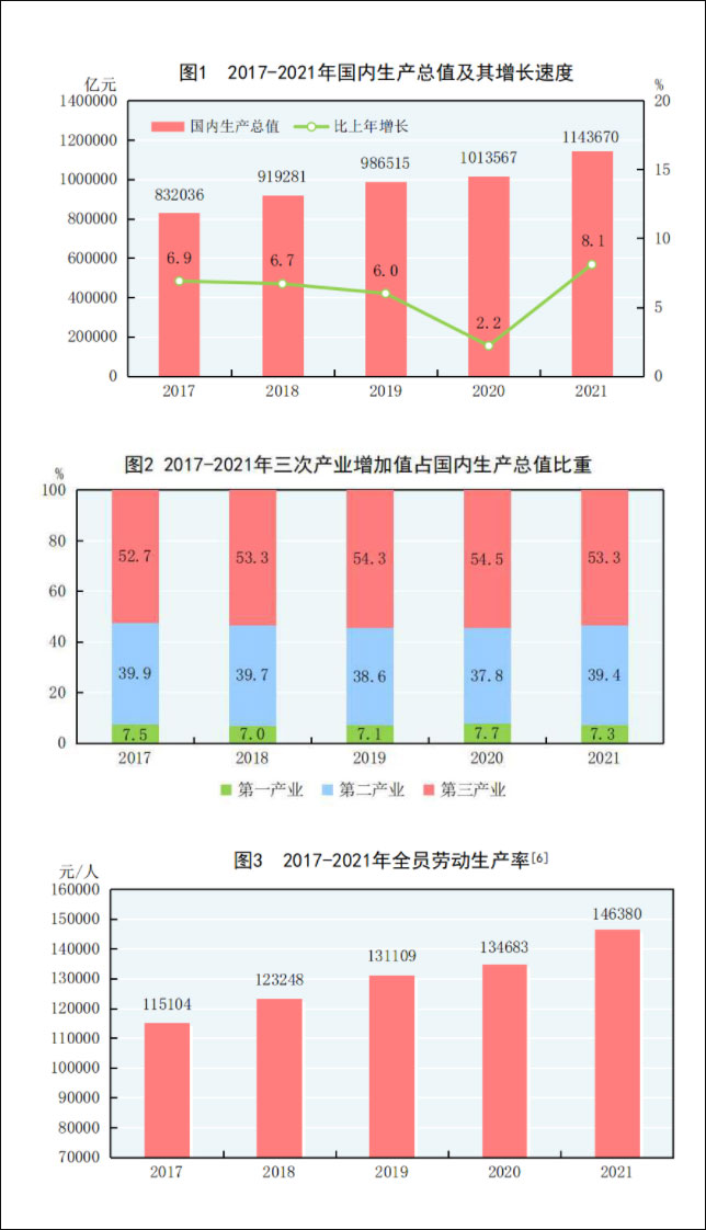 [5]全員勞動生產率為國內生產總值(按2020年價格計算)與全部就業人員的比率,根據第七次全國人口普查結果對歷史數據進行了修訂。