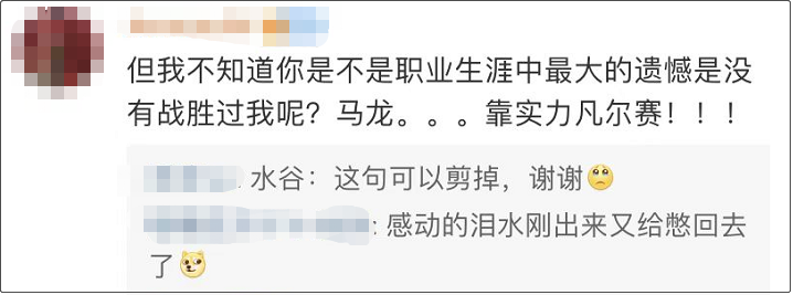 一句“是否遺憾沒有戰勝過我呢”,真是又關切又扎心,也惹得不少網友爆笑。除了感慨這種實力派之間的惺惺相惜,也紛紛表示這是“靠實力凡爾賽”。