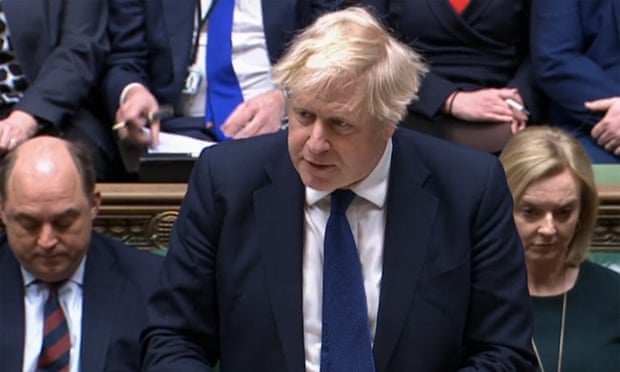 英國首相鮑里斯·約翰遜24日在下議院就烏克蘭問題發表講話,視頻截圖