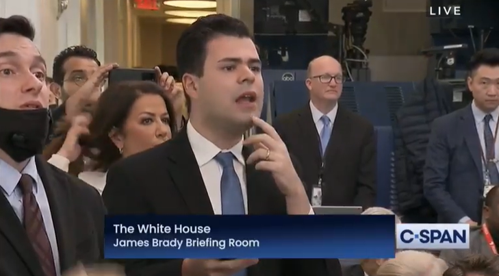 白宮媒體簡報會結束後,坐後排記者不滿沒有提問機會,跟前排記者吵起來了