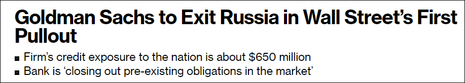 在高盛此前公佈的年報顯示,該行對俄羅斯的信貸敞口為6.5億美元。