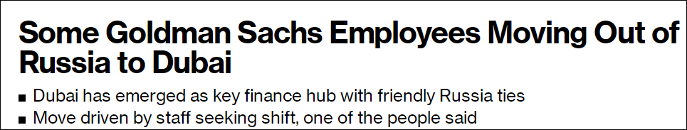 此前,據彭博社3月7日報道,高盛集團已計劃將部分在莫斯科的員工轉移到迪拜工作。