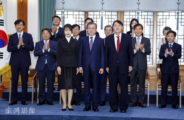 時任韓國總統文在寅(中)與尹錫悦 圖片來源:澎湃新聞