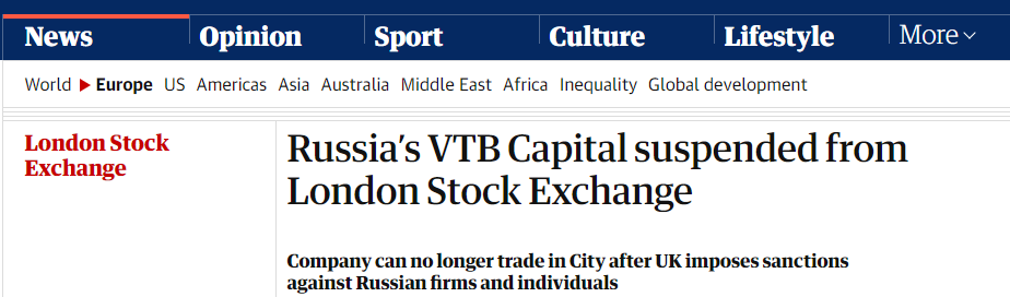 VTB Capital被視為俄羅斯吸引資金工具,倫交所此前暫停其交易資格 英國衞報截圖