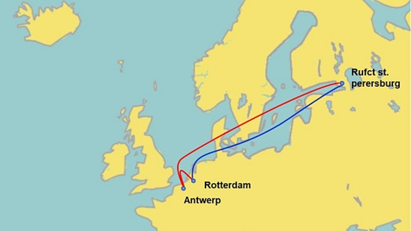 二程歐洲基本港到俄羅斯聖彼得堡的支線 圖片來源:網絡