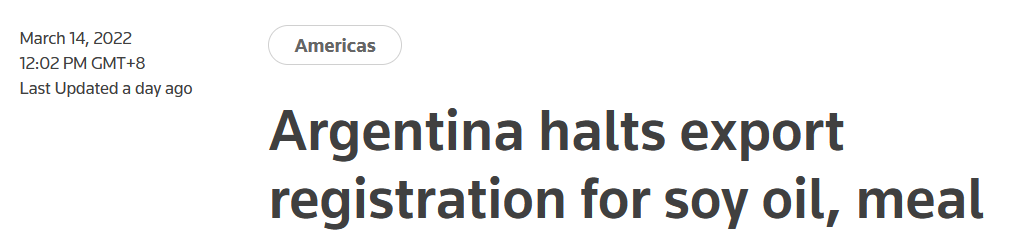 阿根廷是世界上最大的加工豆製品出口國,該決定可能會進一步擾亂受到俄烏戰爭衝突影響的世界大豆市場,並再次推高相關產品價格。路透社報道稱,消息公佈後,美國豆粕期貨價格上漲超過2.2% 。