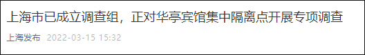 上海成立調查組,對華亭賓館集中隔離點開展專項調查