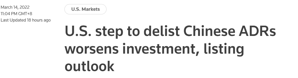 當地時間3月8日,美國證券交易委員會(SEC)依據其《外國公司問責法》(HFCAA),將五家在美上市的中國公司(百濟神州、百勝中國、再鼎醫藥、盛美半導體、和黃醫藥)列入“暫定清單”,即有退市風險的“相關發行人”。該消息引發中概股集體大跌,也因此成為繼全球通脹、俄烏衝突、奧密克戎蔓延等原因之外,另一大引發港股震盪的因子。