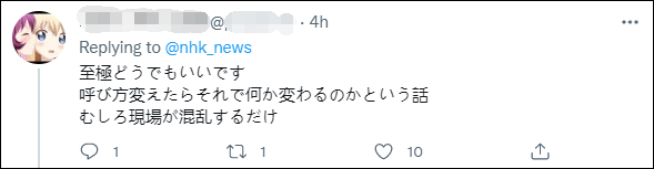 還有人認為,這種事情“實在是無所謂”,並反問自民黨,“如果改變叫法,會有什麼改變嗎?”