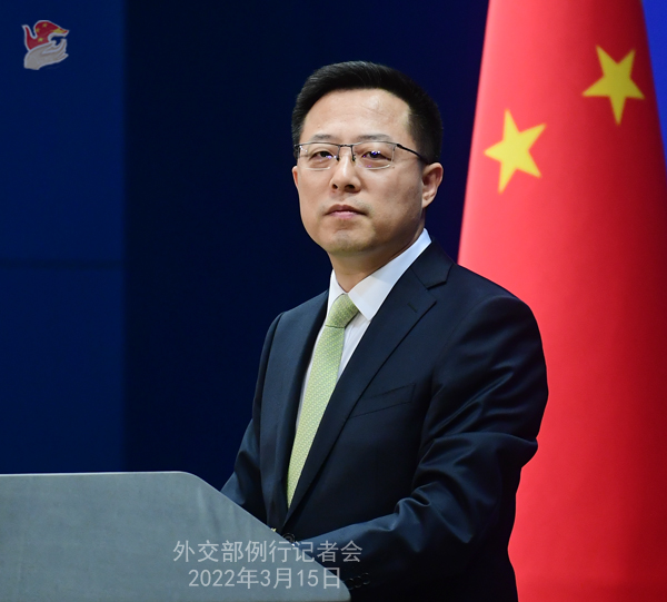 3月15日,外交部發言人趙立堅主持例行記者會。