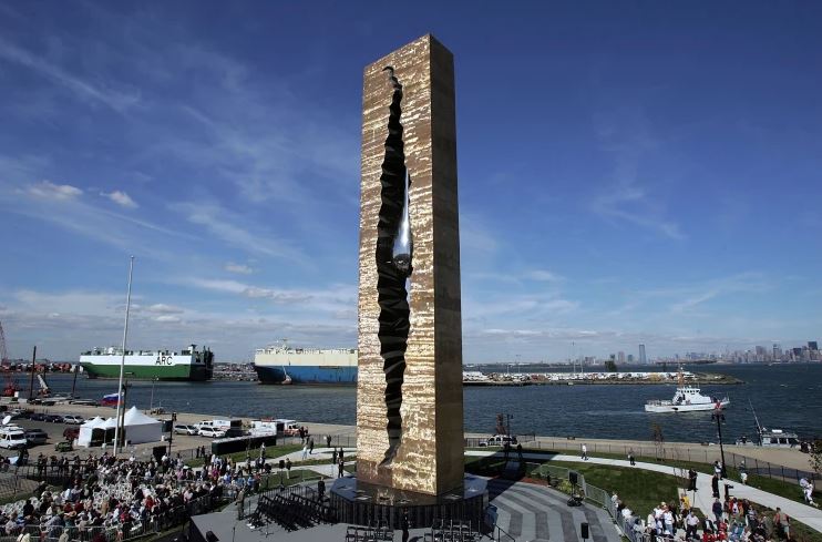 貝永市的這座紀念碑名字叫做“為反對世界恐怖主義而鬥爭”,但也被稱為“淚珠紀念碑”或“悲傷的眼淚”。它全高30米左右,鋸齒狀的青銅外殼內,有一顆漂亮的鎳制“淚滴”,2005年,普京到訪美國,併為這座紀念碑揭幕、簽名。紀念碑上,刻有12名死於“9·11”事件的新澤西居民。