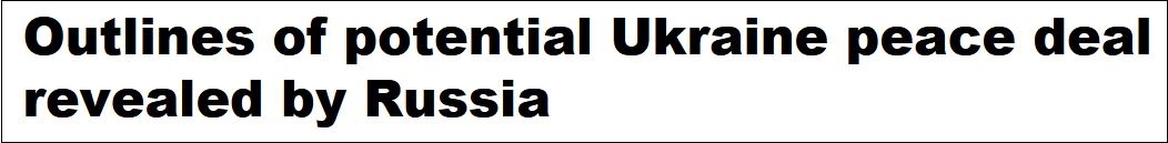 俄新社和RT稱,俄方已經放出潛在的烏克蘭和平協議概述,但法新社隨後援引烏克蘭方面,否認了這一消息