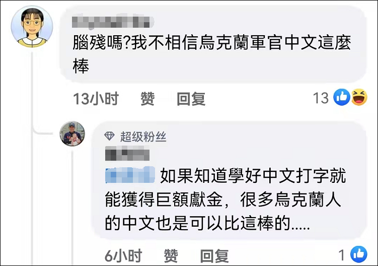 而這一“與時俱進”的詐騙案經台媒報道後令不少島內網民大感無語,有人指出,“烏克蘭軍官”中文這麼溜,明顯不對勁。“我不相信烏克蘭軍官中文這麼棒。”“烏克蘭軍官寫LINE會用中文未免也是太多才多藝。”