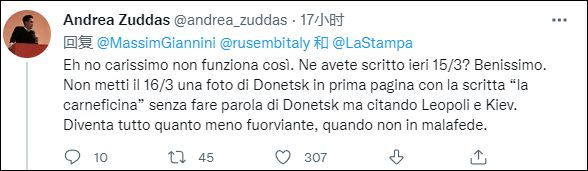 另一位獲贊數比加尼尼的回應還多的網友也表示:“在頭版放頓涅茨克的照片,標着‘大屠殺’卻隻字不提頓涅茨克,而是説利沃夫和基輔,就算不是出於惡意,也會誤導別人。”