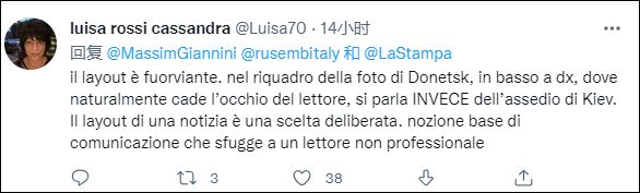 然而,有不少意大利網友表示他們並不買賬。一位網友指出:“《新聞報》的佈局存在誤導性,因為照片右下角的文字,同時也是讀者視線最容易落下的地方,討論的是基輔遭到的圍攻,而媒體刊物的佈局都是經過深思熟慮的。”