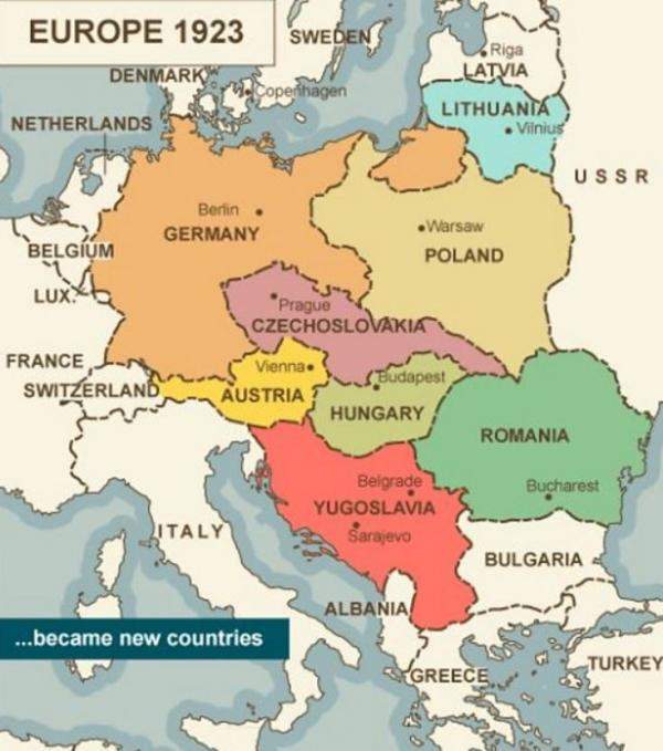 一戰後,原來的俄羅斯歐洲領土上出現多個國家。(來源:BBC)