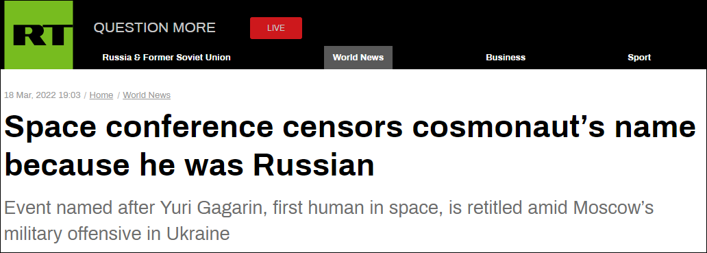 科技新聞網站“未來主義(Futurism)”評論道,“在慶祝‘人類在太空取得的成就’的同時,卻抹去了第一個飛上太空的人類的名字,這太糟糕了……但這樣做符合抵制所有俄羅斯事物的潮流,包括著名作曲家和食品,這樣做是令人髮指的(outrageous)。”