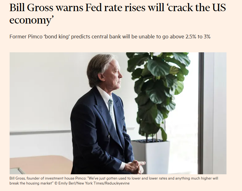 美國債王格羅斯:加息無法抑制通脹,加至3%還會導致房地產市場崩潰