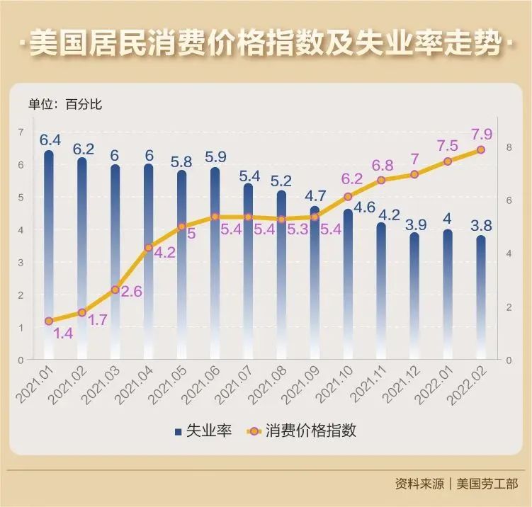 全球能源與食品價格不斷飆升,推高了通脹。美國勞工統計局近日發佈的數據顯示,美國2月份未經季調消費者價格指數(CPI)同比上漲7.9%,創1982年1月以來同比最大漲幅——2月物價的大幅攀升主要受能源、住房和食品價格上漲等因素影響。能源價格在該月環比上漲3.5%,同比上漲25.6%,其中汽油價格環比上漲6.6%,為CPI貢獻近1/3環比漲幅。食品價格環比上漲1%,為2020年4月以來最大漲幅。而佔CPI權重約三分之一的住房成本環比上漲0.5%,同比增長4.7%。[2]