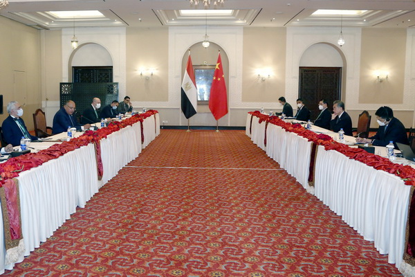 王毅説,中埃有着深厚友誼和牢固互信。前不久,塞西總統專程赴華出席北京冬奧會,習近平主席同他舉行會見並達成重要共識,為兩國關係注入強勁動力。去年中埃雙邊貿易額逆勢增長37%,充分體現了兩國經濟的高度互補性。兩國攜手抗疫,建成非洲第一條疫苗聯合生產線,彰顯了傳統友誼,豐富了全面戰略伙伴關係內涵。中方始終將中埃關係置於中東和對非外交優先方向,願同埃方一道,朝着新時代構建中埃命運共同體目標努力,推動中埃關係不斷邁上新台階。