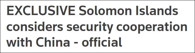 路透社獨家報道稱,所羅門羣島正考慮一份與中方“更廣泛的安全協議”