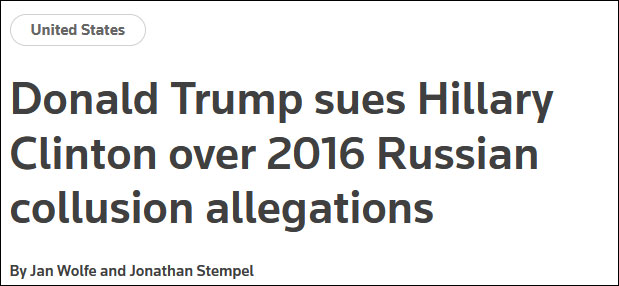 並且,《國會山報》稱,該訴訟中指控希拉里等人 “敲詐勒索”和“共謀犯下有害的謊言”,還要求賠償和懲罰性損害賠償。