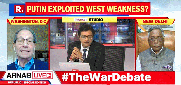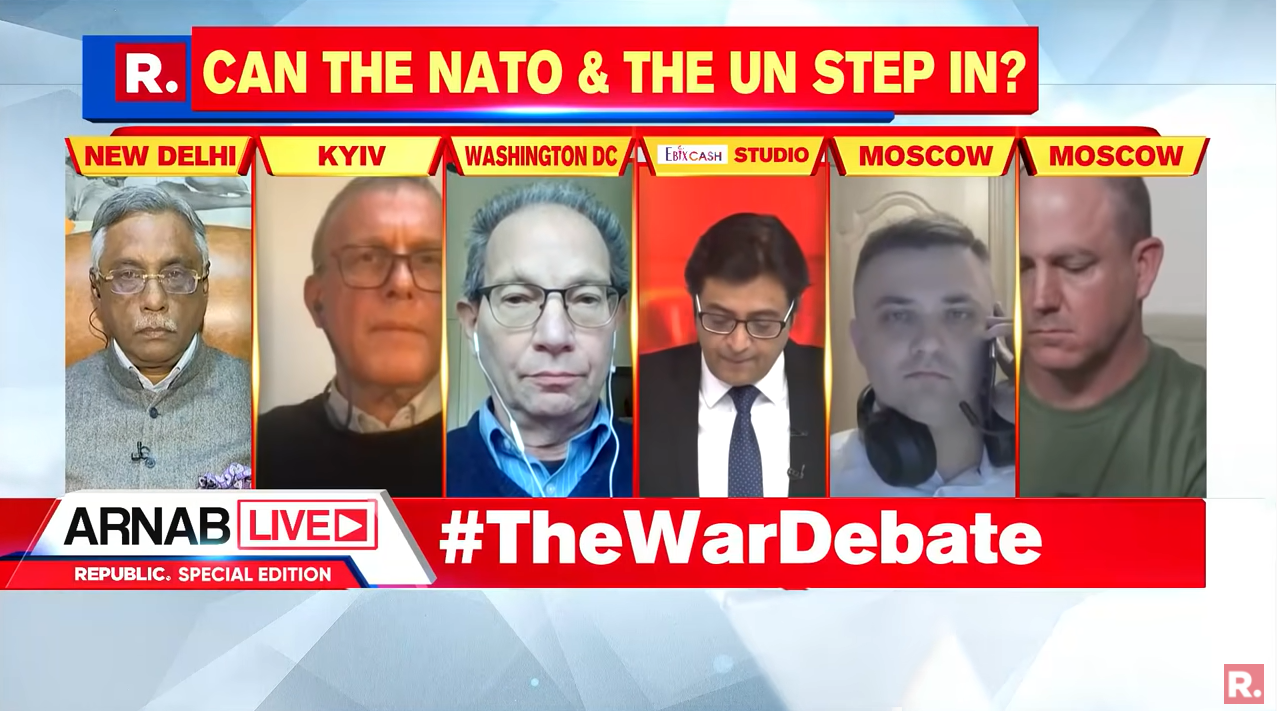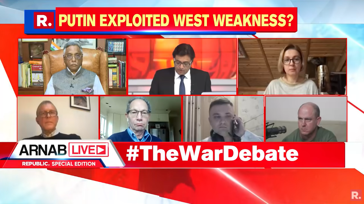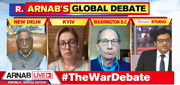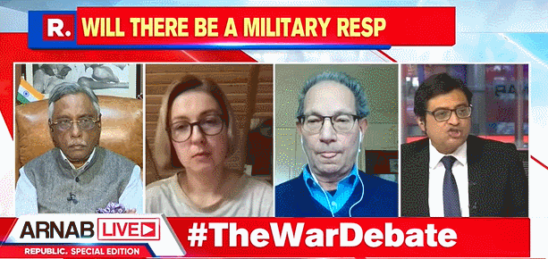 在“與阿納布·戈斯瓦米的特別辯論”這檔節目中,戈斯瓦米與國際小組嘉賓通常會圍繞某些話題展開多個主題辯論,期間,節目也會插播相關新聞。2月27日,“與阿納布·戈斯瓦米的特別辯論”播出新一期節目,聚焦俄烏衝突,近期網上廣為流傳的視頻片段就截取自這期節目。