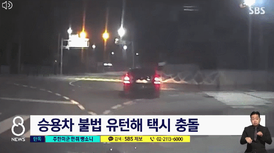 綜合韓國SBS電視台,韓聯社、《中央日報》等韓媒報道,這起事故發生在韓國京畿道平澤市。24日凌晨1點40分左右,一名30多歲的駐韓美軍A某在駕車時突然違章掉頭,與後面的出租車相撞。