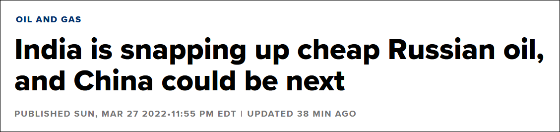 報道分析稱,印度可能開始以20%左右的折扣從俄羅斯“撿漏”,根據目前的原油價格,這意味着每桶可便宜20餘美元。