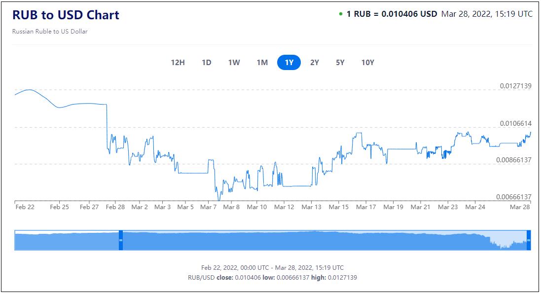 彭博社報道稱,普京此舉是強迫歐洲企業為跌幅嚴重的盧布“做支撐”。該消息公佈後,盧布確實上揚,當日兑美元上漲7%,將今年的跌幅收窄至23%。