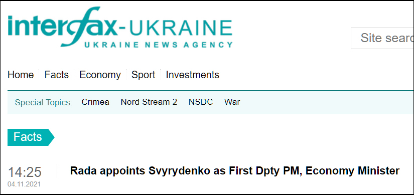 國際文傳通訊社烏克蘭分社去年11月關於斯維裏登科任命的報道