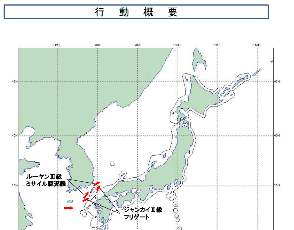 隨後,上述艦艇沿對馬海峽向東北方向前進,駛向日本海。