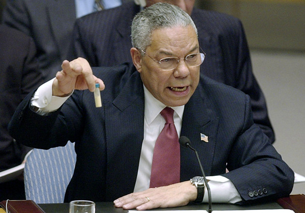鮑威爾在聯合國安理會展示可能裝有炭疽的小瓶