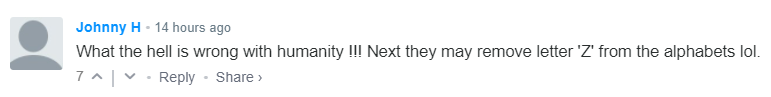 “人類到底怎麼了!下一步他們可能要從字母表中刪除‘Z’了哈哈哈。”