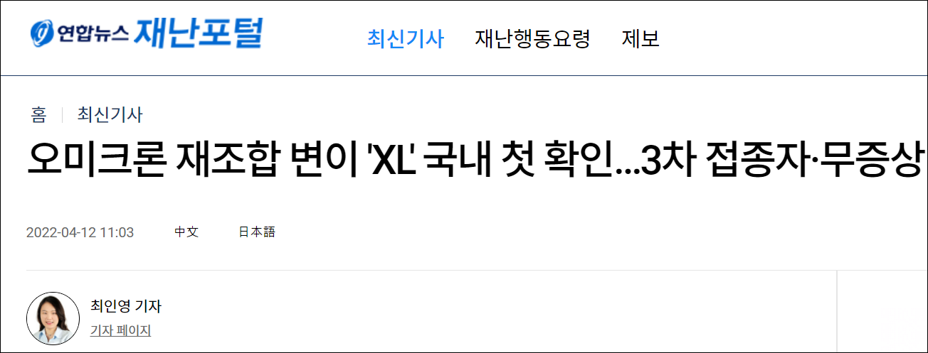 (觀察者網訊)據韓聯社4月12日報道,韓國中央防疫對策本部12日表示,韓國國內首次發現感染新冠重組毒株“XL”的確診病例,目前防疫部門正在進行流行病學調查。另據當天的通報,11日新增確診病例210755例,累計超過1563.5萬例。