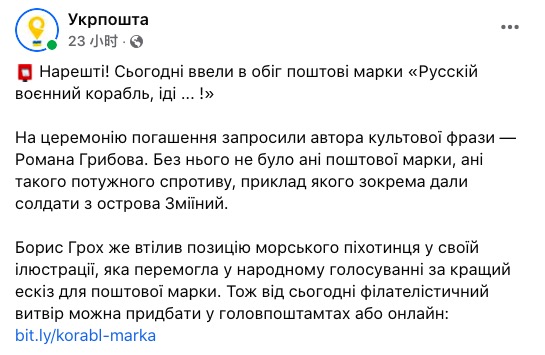 烏克蘭國家郵政甚至將臉書封面都換成了這張郵票。