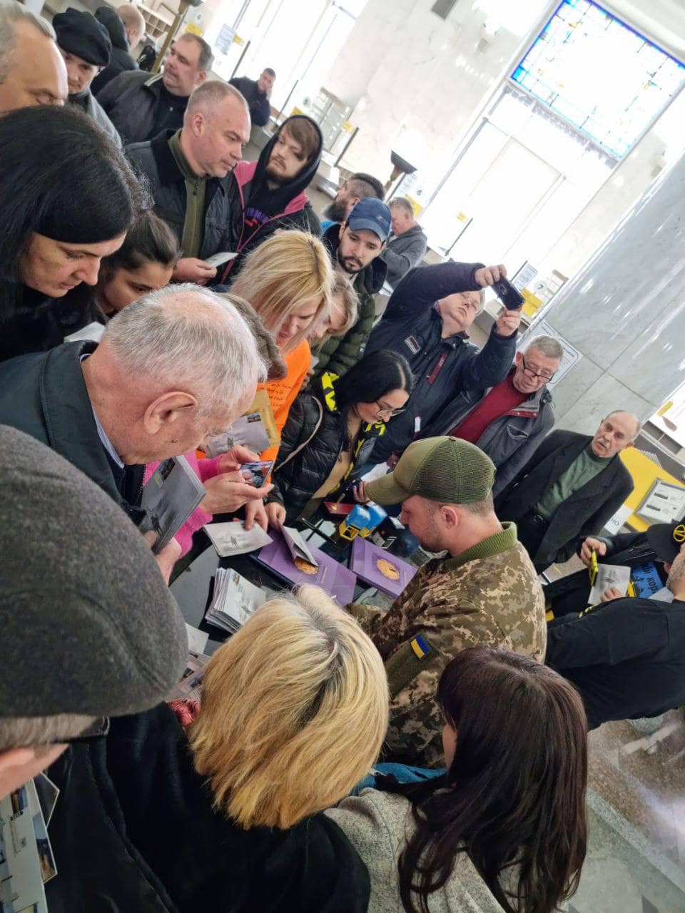 發售儀式當天,不少烏克蘭民眾前來購買郵票,人們還將Hrybov團團圍住,索要簽名。