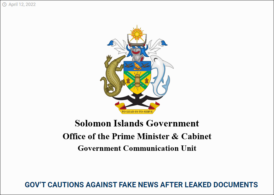 針對澳媒的這些報道,所羅門羣島總理辦公室網站4月12日就已發佈聲明澄清,直指這些報道內容是假新聞和虛假宣傳,譴責幕後黑手“為自己的利益拼命製造不穩定”。