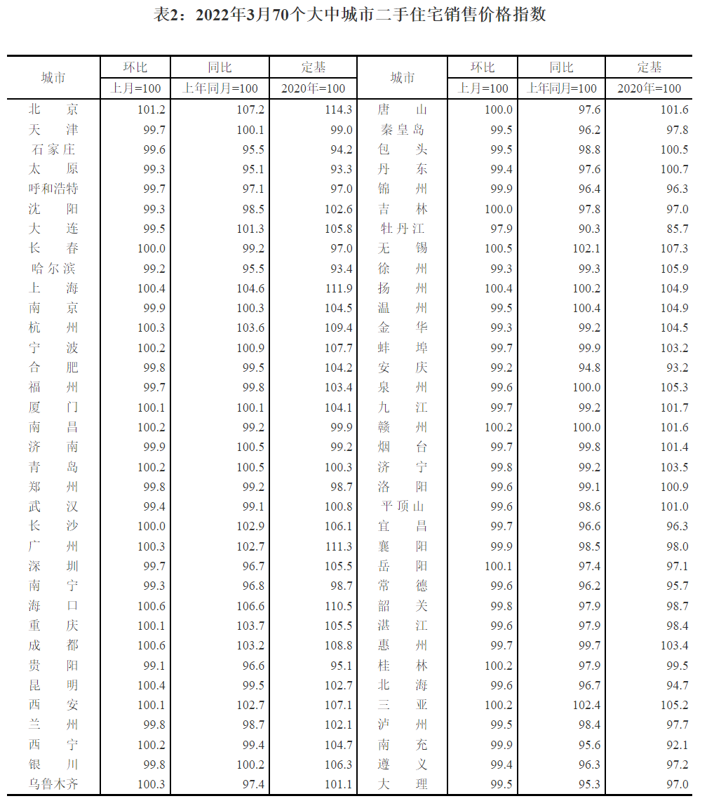 2022年3月份,70個大中城市中,商品住宅銷售價格環比下降城市個數減少,同比下降城市個數增加;各線城市商品住宅銷售價格環比趨穩,同比下降或漲幅回落。
