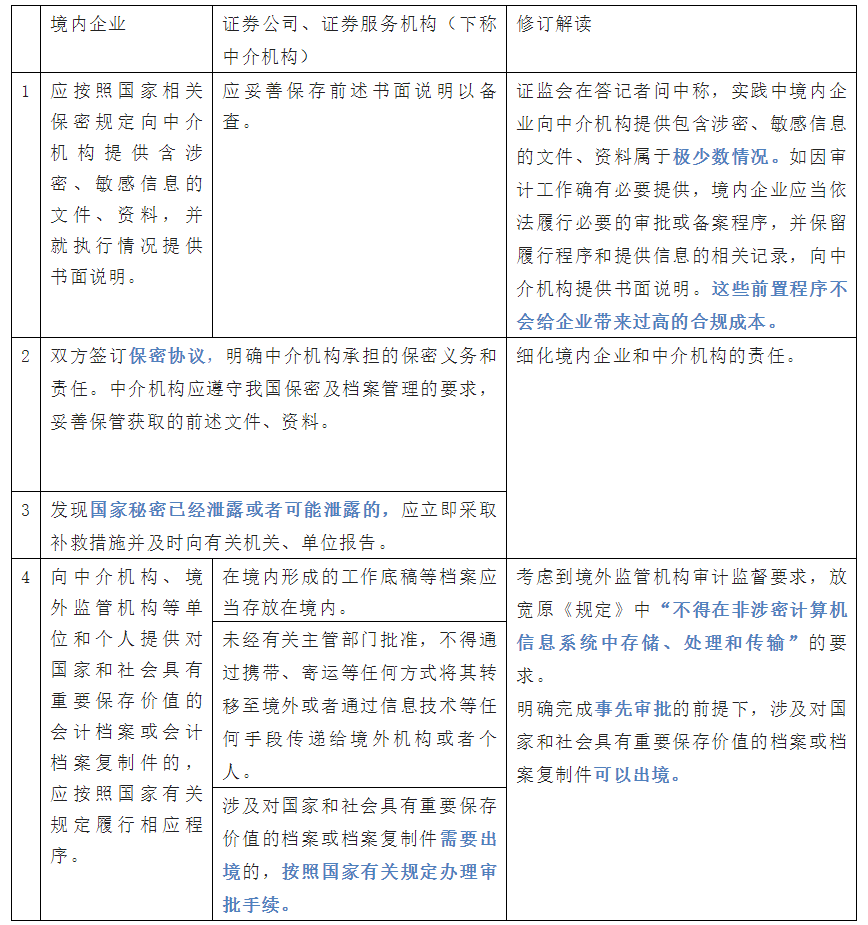 該《規定》自2009年出台的《關於加強在境外發行證券與上市相關保密和檔案管理工作的規定》(下稱原《規定》)修訂而來,結合目前市場和監管實踐的新形勢,證監會會同財務部、國家保密局和國家檔案局對原《規定》進行修訂,擬對中美對於上市公司的審計監管熱點問題作出回應,深化跨境監管合作,應對中美審計監管的新形勢。《規定》將《中華人民共和國會計法》《中華人民共和國註冊會計師法》《中華人民共和國國家安全法》和《國務院關於境內企業境外發行證券和上市的管理規定》作為上位法律依據,同時在協作機制中增加財政部的監督與規範。本期,商小法將探討該《規定》監管的重點內容。