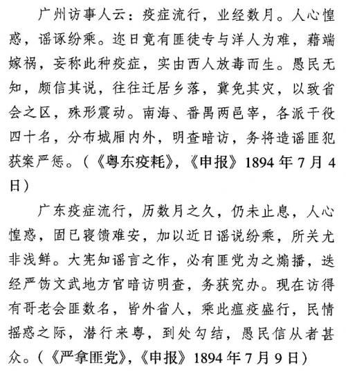 《申報》有關報道集萃的圖片引自李文等所著《嶺南瘟疫史》