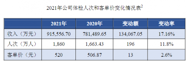 然而上述體檢客户中,團體客户為美年健康貢獻了83%的營收,個體客户僅為該公司貢獻了17%的營收,從客單價來看,美年健康2021年的體檢客單價較2020年提升了2.6%至520元。