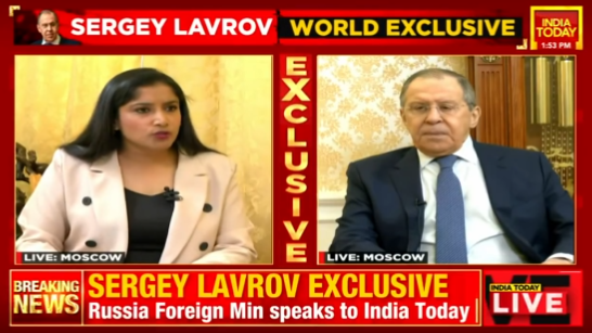 俄羅斯外交部長拉夫羅夫(右)接受《今日印度》獨家採訪