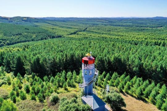 塞罕壩機械林場內的望海樓(2021年8月23日攝,無人機照片)。新華社記者牟宇攝