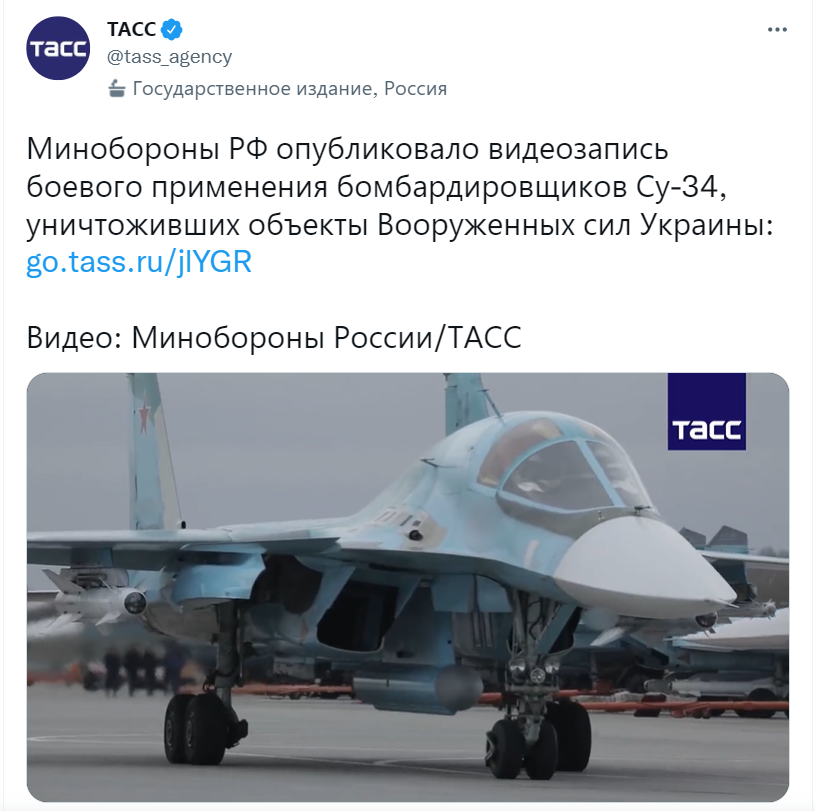 此外,俄國防部19日還放出一段俄軍蘇-34戰機掛彈空襲烏軍的視頻。