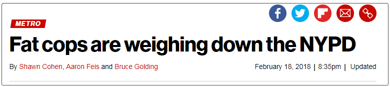 胖警察正在壓垮紐約警察局。來源:《紐約郵報》
