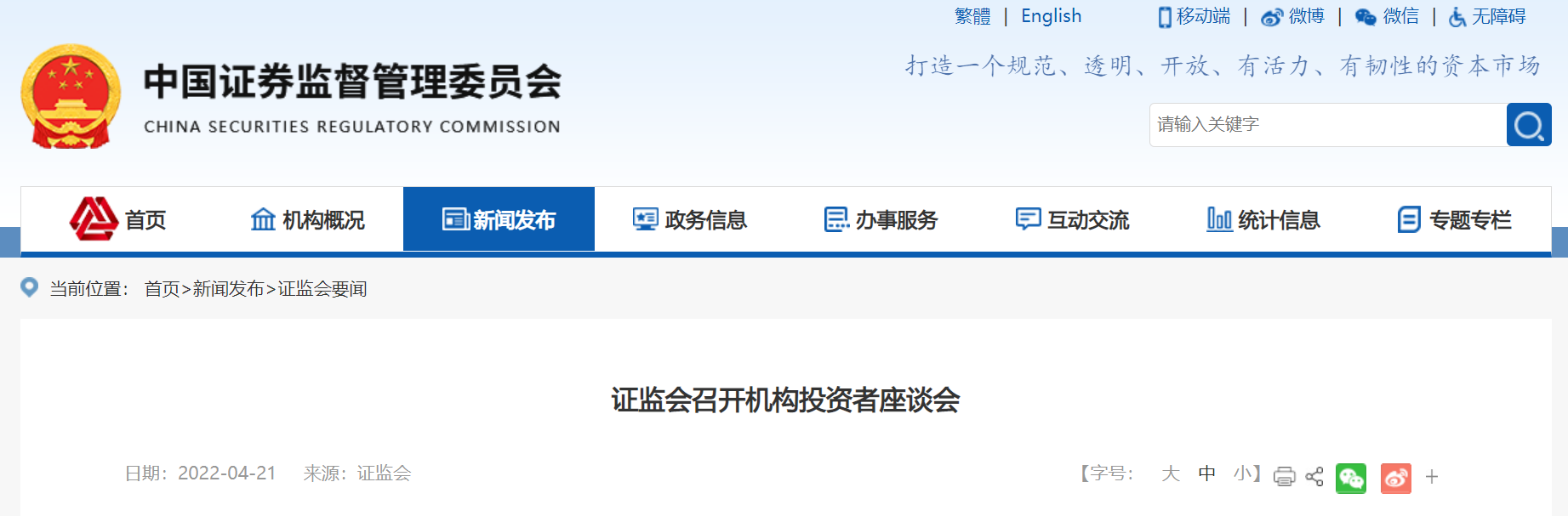 證監會網站消息,為貫徹落實黨中央、國務院關於提高直接融資比重,引入中長期資金有關要求和國務院金融委工作部署,4月21日,證監會主席易會滿召開全國社保基金和部分大型銀行保險機構主要負責人座談會,銀保監會副主席曹宇、證監會副主席李超出席會議。會議分析了當前國內外經濟金融形勢,圍繞推進資本市場高質量發展、引導更多中長期資金入市聽取意見建議。