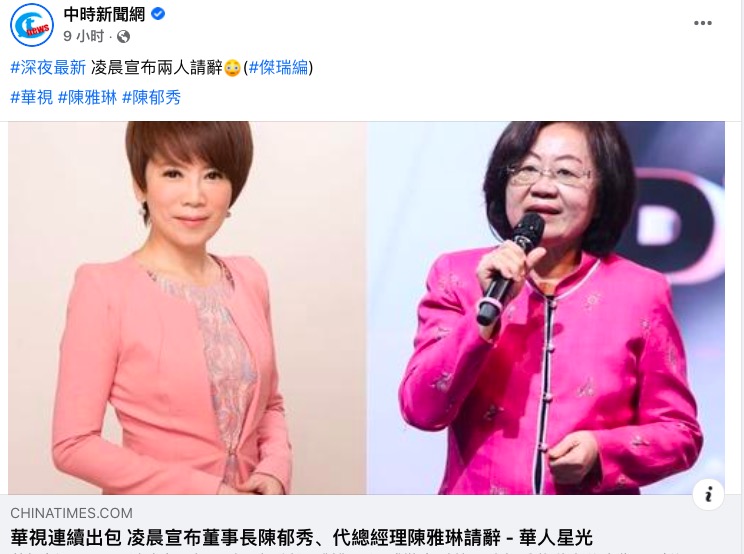 當時,華視代理總經理陳雅琳就於21日公開道歉並決定辭職,不過被董事長陳郁秀“慰留”,其餘董事也附議。