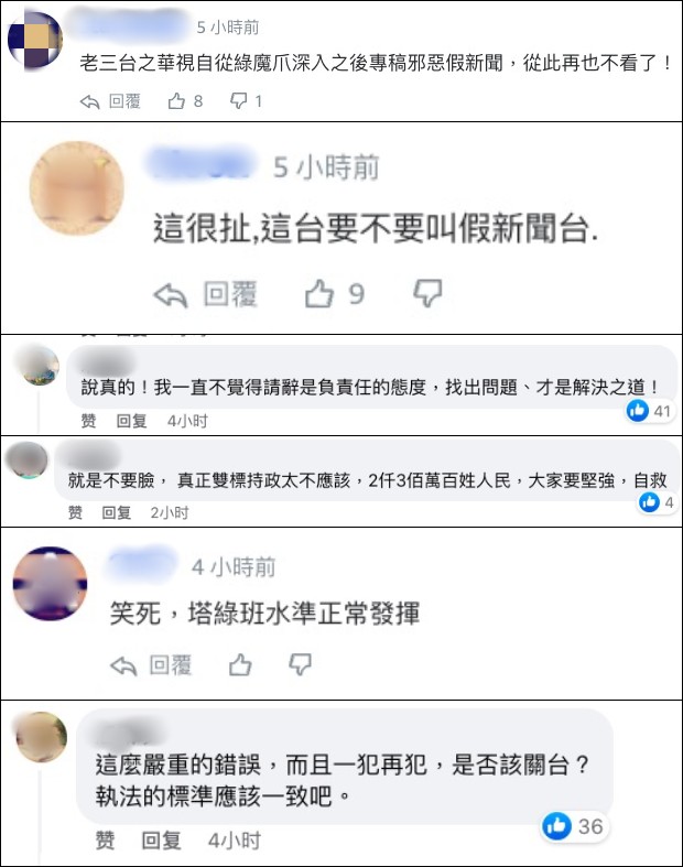 同一天上午出現兩波烏龍,台網民也看不下去了。有人怒斥華視是“假新聞台”,直言不會再看;有人質疑台當局太“雙標”,出現這麼嚴重的錯誤且一犯再犯,竟然還不關台。